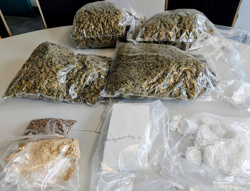 Krefeld. So sehen Drogen im Wert von € 250.000 aus – Foto der Krefelder Polizei. Das ist in etwa der Straßenverkaufswert der Substanzen, welche am Dienstag (20. Januar 2026) beschlagnahmt wurden. Dem vorausgegangen waren Observationen von Zivilbeamten und Erkenntnisse der Ermittlungsgruppe „Herkules“, die bei der Kriminalpolizei für die Bekämpfung der offenen Drogenszene zuständig ist. Insgesamt konnten die Beamten erhebliche Mengen, mehrere Kilogramm Kokain, Heroin sowie Marihuana aus dem Verkehr ziehen. Zwei Männer im Alter von 24 und 32 Jahren wurden festgenommen, einer davon, als er gerade zu Fuß mit Marihuana in einem Reisekoffer unterwegs war. Beide Zugriffe erfolgten im Umkreis des Stephanplatzes in der Innenstadt. In einem in der Umgebung abgestellten Pkw fanden die Beamten das Heroin und das Kokain.